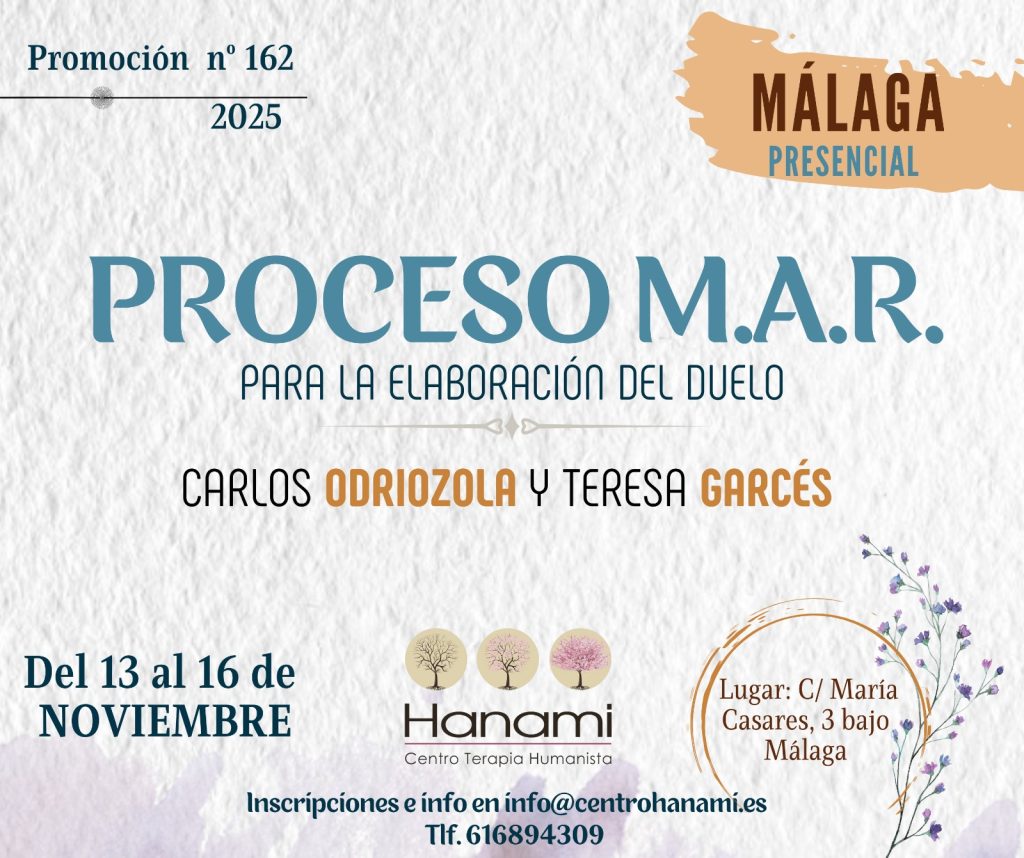 Las sesiones se realizarán del 13 al 16 de Noviembre de 2025 en el Centro Hanami, C/María Casares 3 bajo, Málaga.